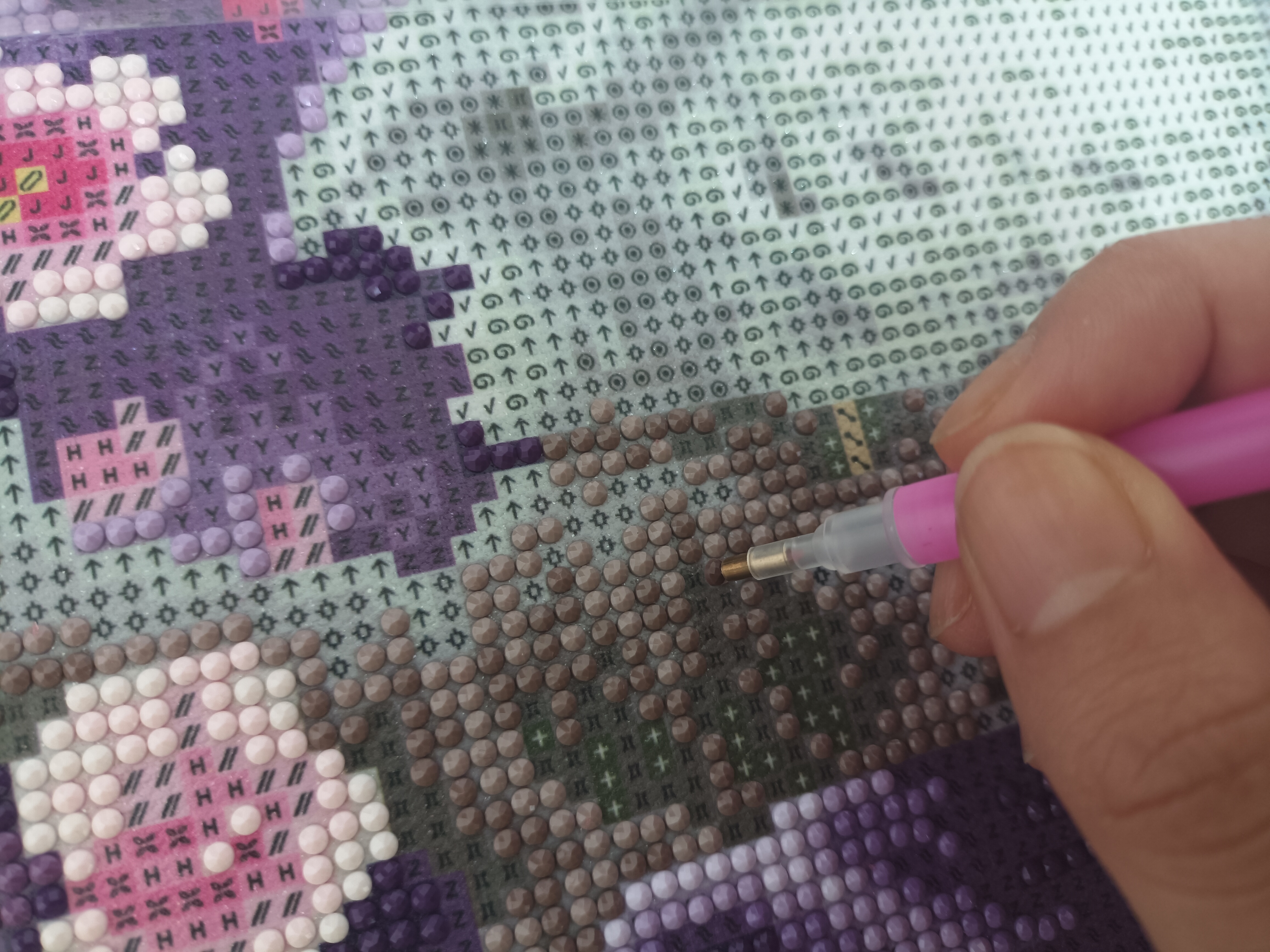 보석 십자수는 도안이 그려져 있는 캔버스에 작은 그림이나 숫자가 적혀있는데 거기에 한 땀 한 땀 보석들을 붙여 넣는 겁니다. 간혹 판매 당시 완성품과 실제 보석들을 붙여나가며 완성되는 작품의 차이가 발생할 수 있는데, 판매 당시 완성품 사진과 비교하며 차이점을 발견하고 메꿔주는 방법으로 해 나아가신다면, 더 멋진 작품을 완성시킬 수 있습니다.