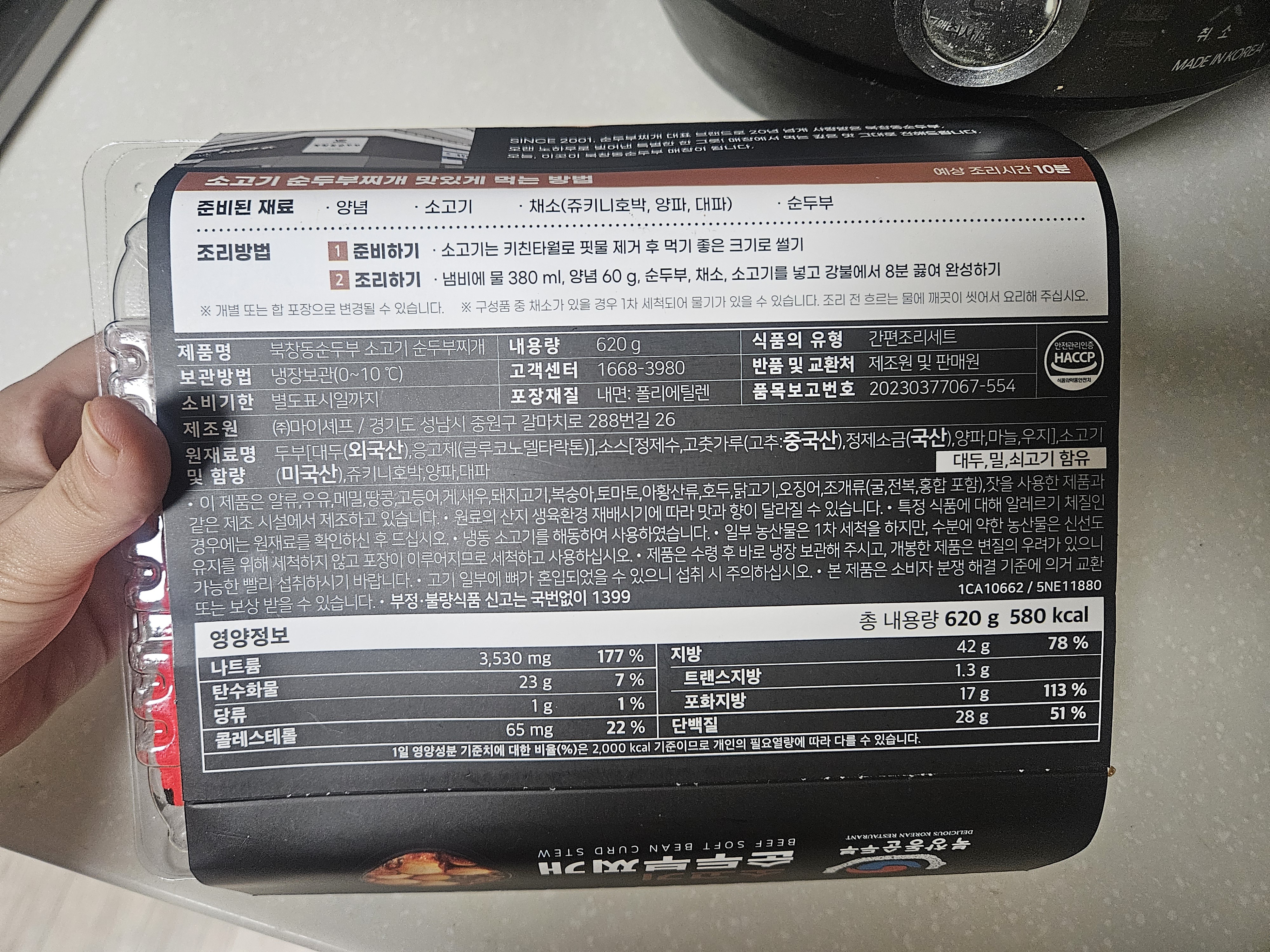 | 중량/칼로리 | 620g (2인분) / 582칼로리 |