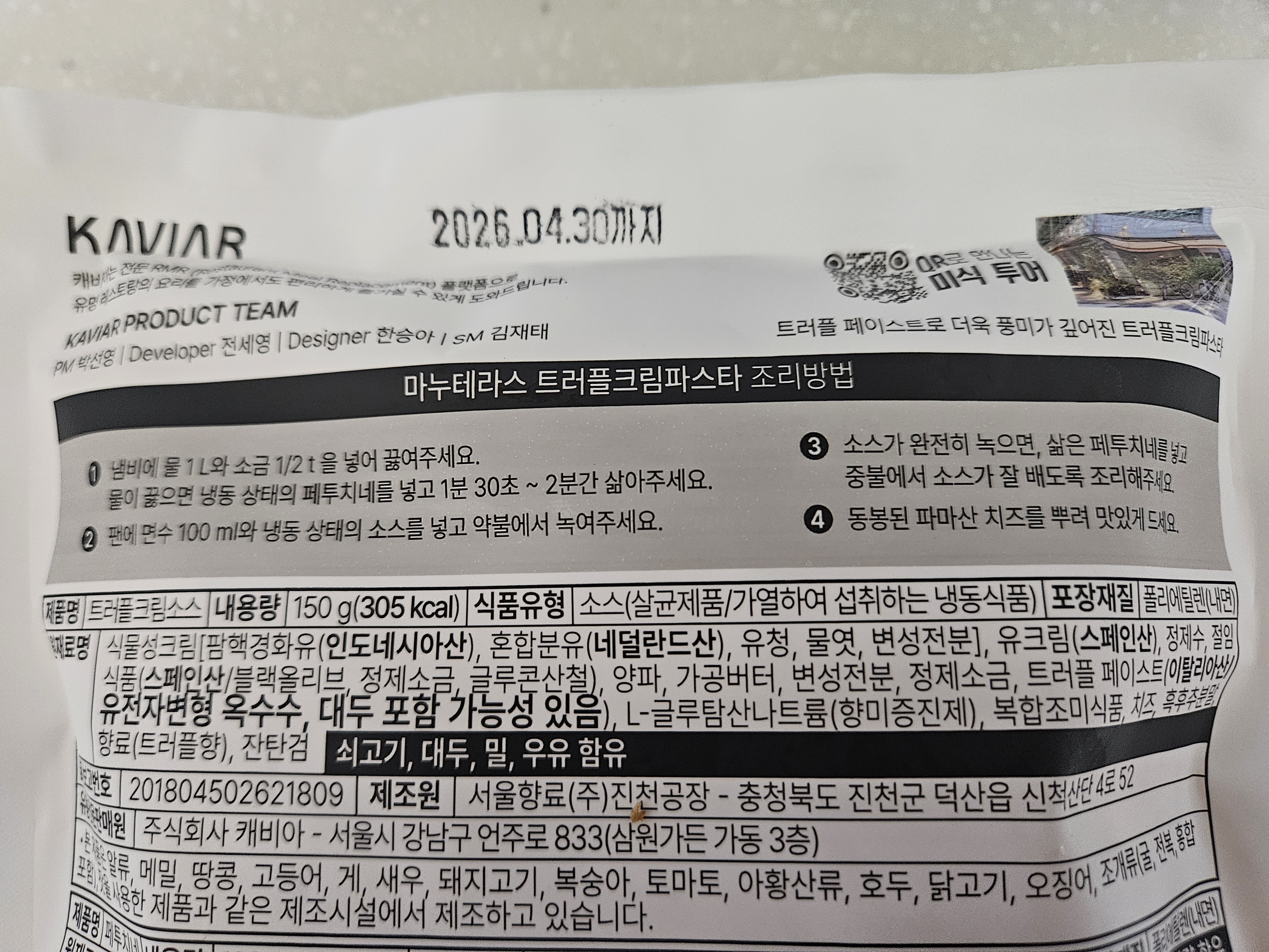 | 제품명 | 마누테라스 트러플 크림 파스타 |