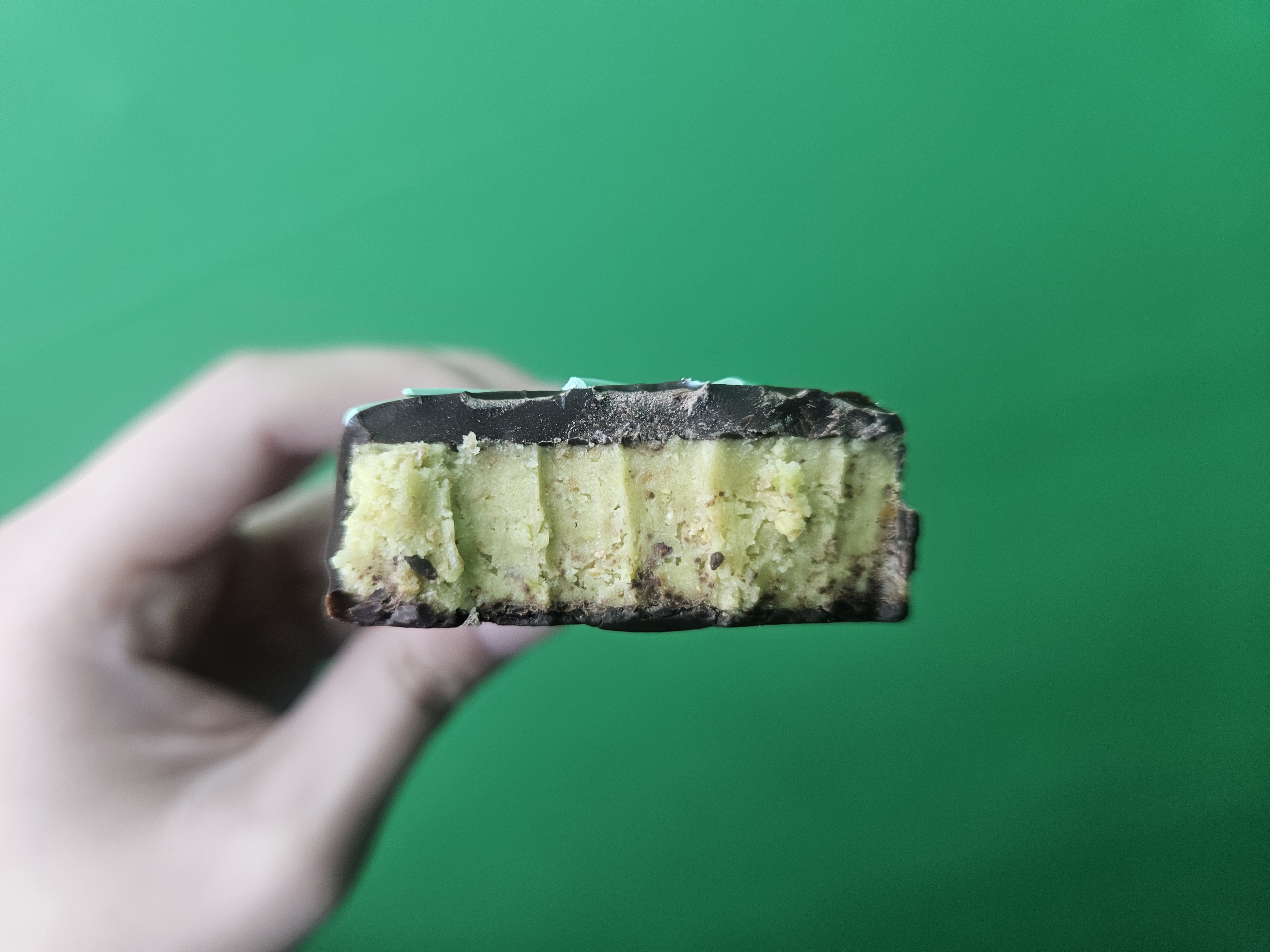 ● 핵심은 식감 ☞ 피스타치오 필링 부분은 바삭한 편이었으며, 초콜릿은 부드러움과 단단함 중간 사이의 식감이었습니다.