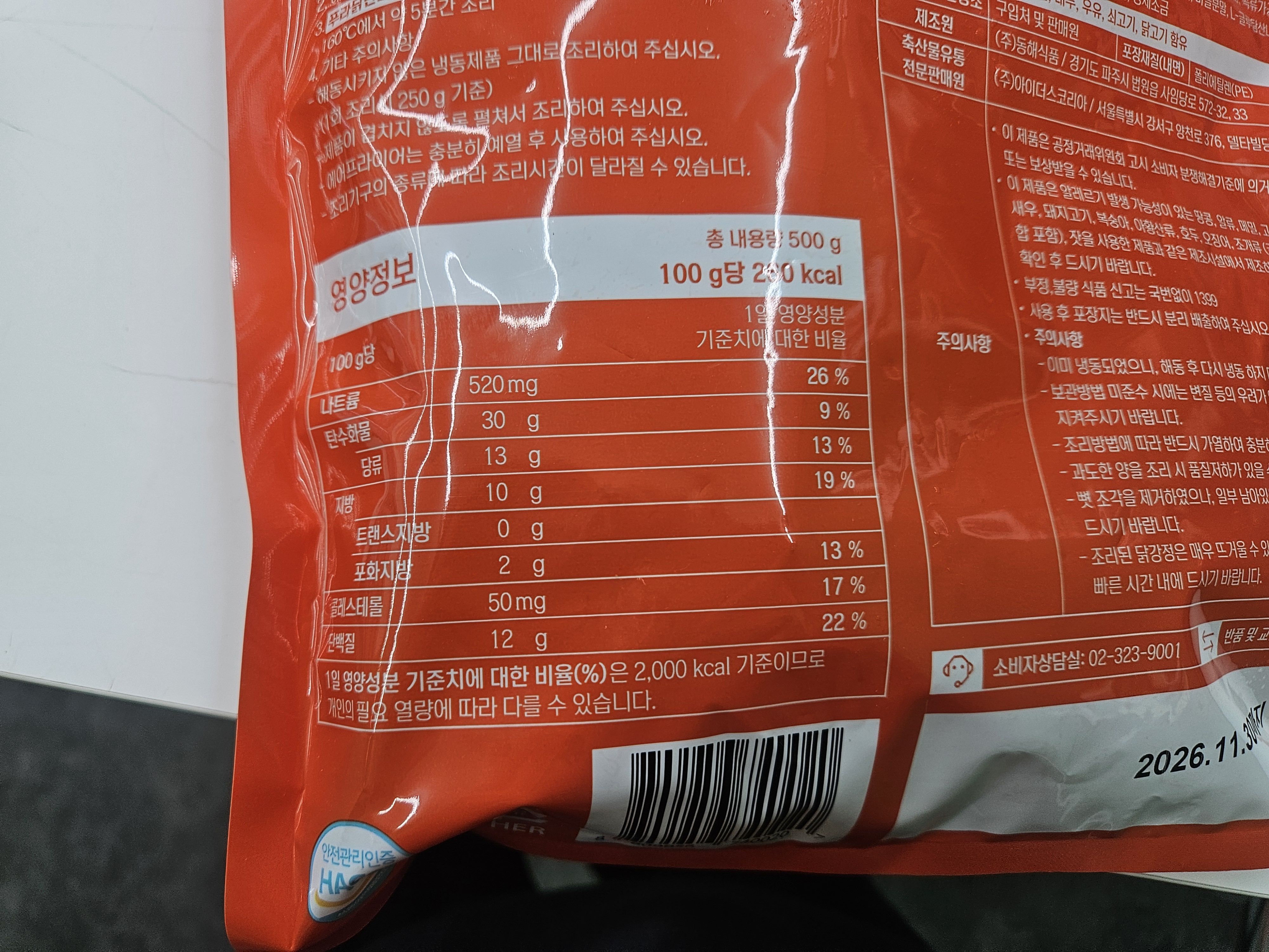| 용량 | 500g/100g당 230kcal |