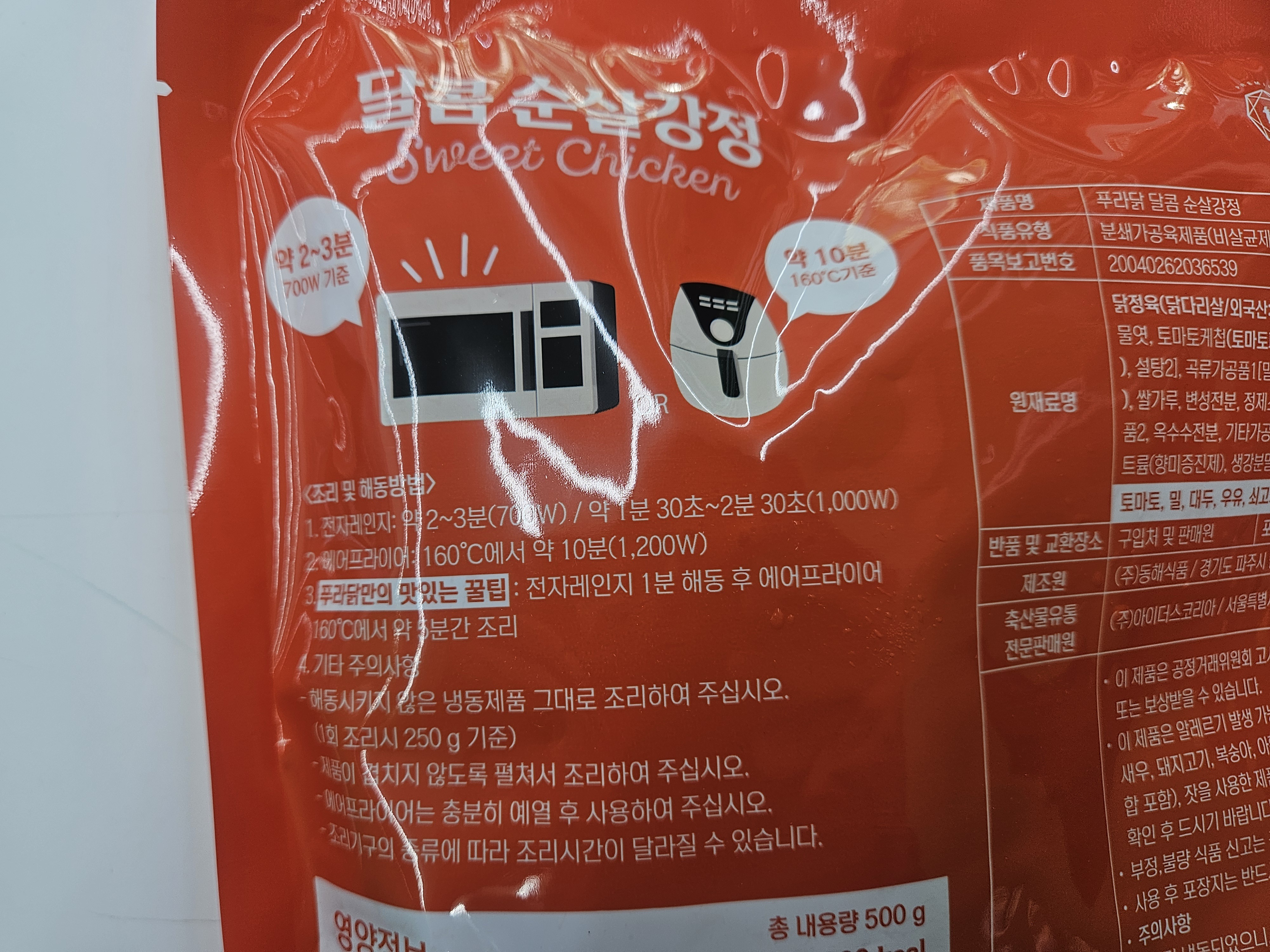 **푸라닭만의 꿀팁은 전자레인지 1분 해동후 에어프라이어 160도에서 약 5분간 조리